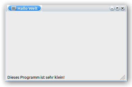 Nachdem das geklappt hat, kann man ein minimales wx-Programm erstellen:#include <wx/wx.h> class MiniApp : public wxApp { public: virtual bool OnInit(); }; class Fenster : public wxFrame { public: Fenster(); }; wxIMPLEMENT_APP(MiniApp); bool MiniApp::OnInit() { Fenster *fenster = new Fenster(); fenster->Show(true); return true; } Fenster::Fenster() : wxFrame(NULL, wxID_ANY, "Hallo Welt") { CreateStatusBar(); SetStatusText("Dieses Programm ist sehr klein!"); }Die Übersetzung läuft über den folgenden Befehl:
