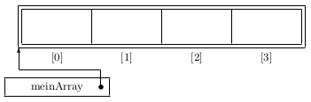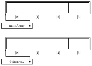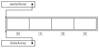 Die Variable meinArray selbst ist eine Referenz, die auf die eigentlichen Daten zeigt, die durch den Befehl new irgendwo im Speicher erzeugt werden.